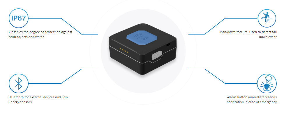 TMT250 is an AUTONOMOUS personal tracker with GNSS, GSM and Bluetooth connectivity. This mini tracker is designed for people, pets, car monitoring, employees control, sport events, etc. IP67 waterproof case ensures outside usage in harsh conditions, moreover large battery‘s capacity expands application range where long battery lifetime is needed. In addition to that, TMT250 supports hands-free, firmware and configuration update via Bluetooth.